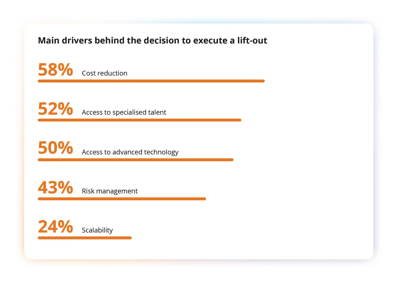 A key advantage of lift-outs is the ability to consolidate services. A partner should have the scope and scale to support your evolving strategy, across geographies and functions. Managing multiple providers defeats the very purpose of outsourcing.